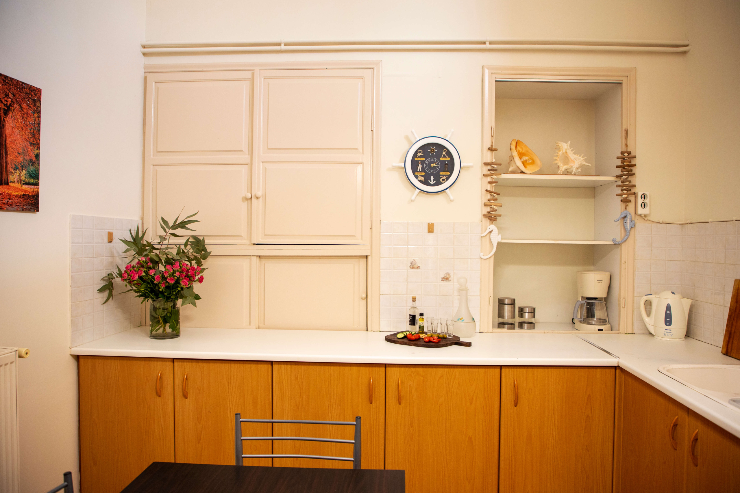 Το ξύλινο πάτωμα, τα υψηλά ταβάνια και η αρχιτεκτονική του εποχής δημιουργούν ένα ζεστό, νοσταλγικό περιβάλλον, ιδανικό για όσους επιθυμούν να βιώσουν την Αίγινα με αίσθηση ιστορικής συνέχειας και πολιτιστικής αξίας. Η πέτρα που το περιβάλλει προσφέρει φυσική δροσιά το καλοκαίρι και ζεστασιά το χειμώνα, κάνοντάς το ιδανικό για διαμονή όλο τον χρόνο.